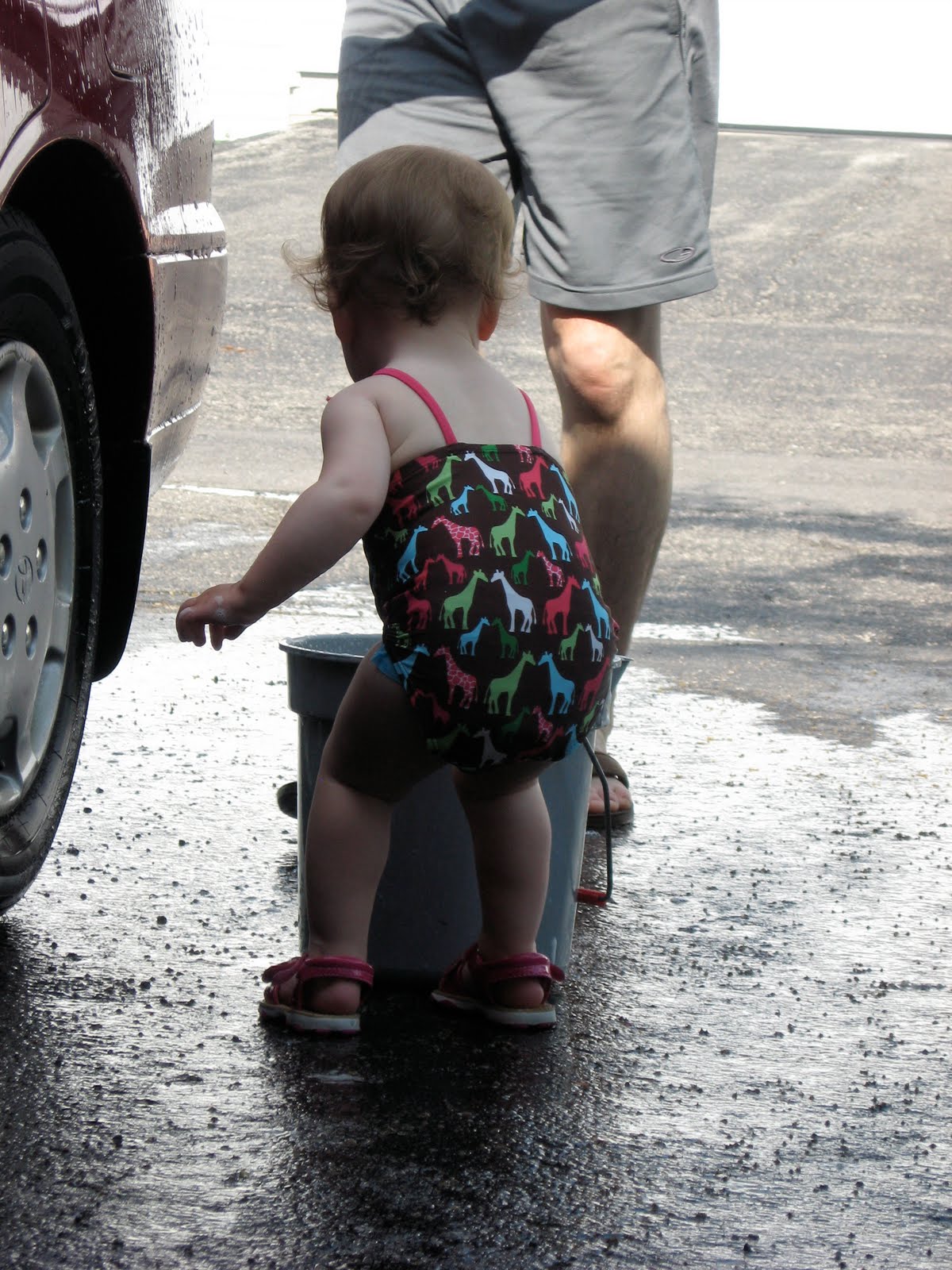 When Aubrey got up from her nap we put on our bathing suit and went to work with Daddy!